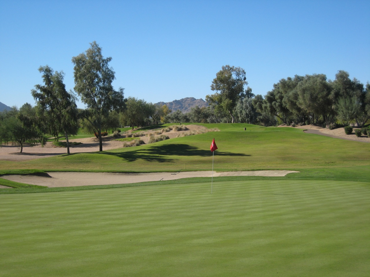 Heute ging es mit dem Gainey Ranch Golf Club auf einen Platz, der mehr oder weniger zu unserem Hotel gehört. Man geht mit seinem Bag zum Empfang und lässt sich dann mit einem 8-Personen Kart zum Club fahren. Da wir als alte Geizhälse das Trinkgeld sparen wollten, versuchten wir, den Weg zu Fuß zu finden. Nach 20 Metern kam aber der Herr mit dem Kart an und fragte uns, ob wir zum Golfplatz wollten. Das Ganze war uns etwas peinlich, also ließen wir uns fahren. Anscheinend waren wir die einzigen „Exoten“, die zu Fuß gehen. Der Mann im Kart zeigte uns dann den Weg zum Proshop und verschwand mit unseren Bags. Man muß manchmal schon Vertrauen in die Menschheit haben.