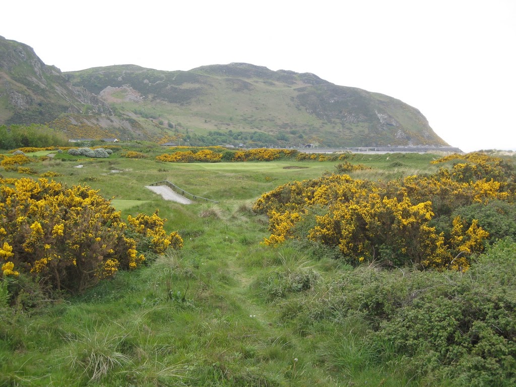 Wenn ich schon mal in der Nähe war, wollte ich auch gerne mal den Platz in Conwy sehen. War nur 3 Minuten von Zentrum entfernt. Als wir dann von Parkplatz kommend den Platz sahen, war ich nicht zu halten. Man sah einen schönen klassischen Linkskurs, was mich ja auch so schon in Wallung bringt. Die Sahnehaube war für mich aber das Ginster. Der ganze Platz war voll davon. Und alles in voller Blüte. Wer das noch nicht gesehen hat, kann sich vielleicht schwer vorstellen, wie schön so etwas aussehen kann. Bei mir bringt es auf jeden Fall den Puls richtig nach oben. Also nach Startzeit fragen Greenfee zahlen und los geht es.
