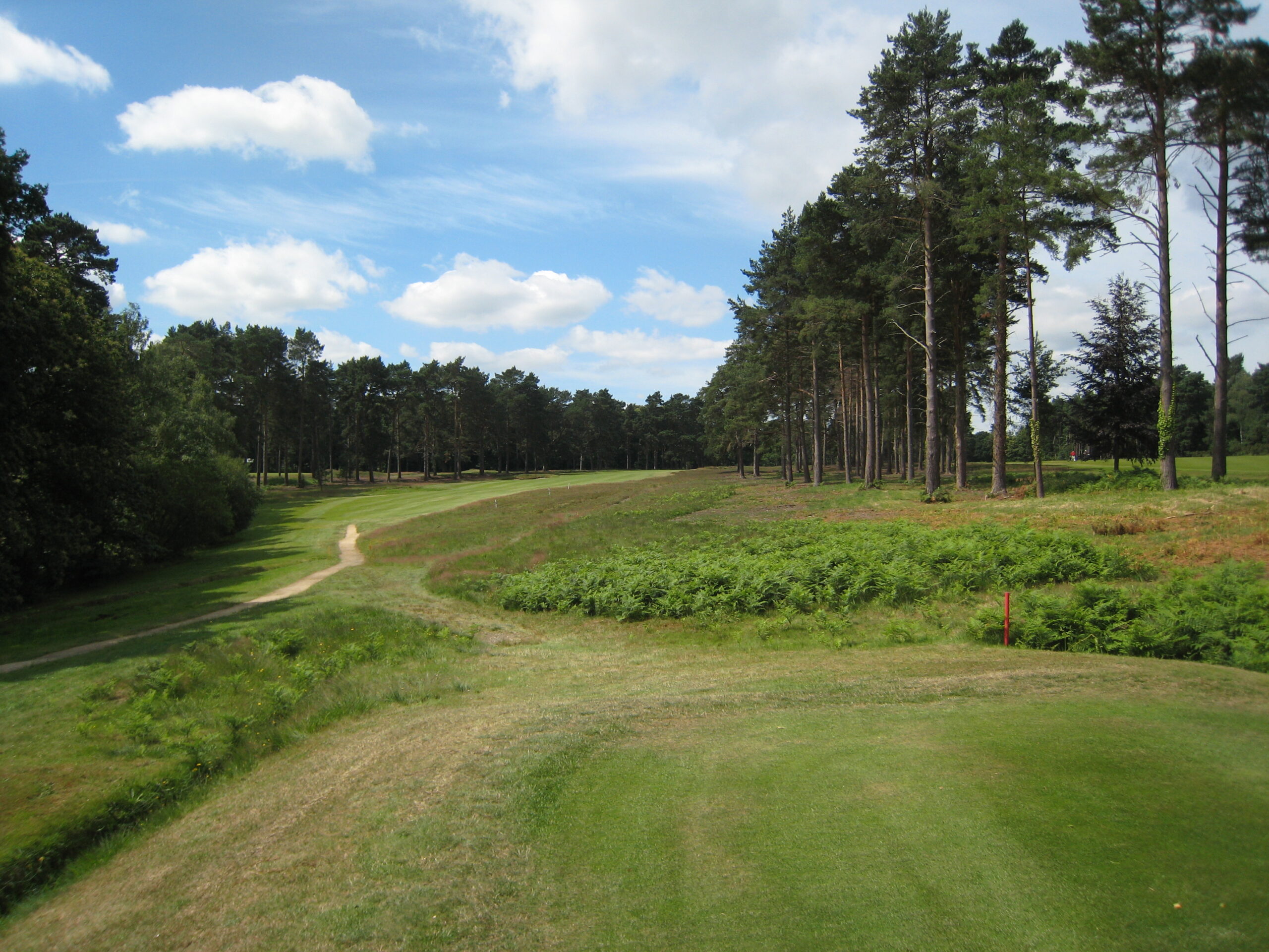 Der Platz ist, wie fast alle Kurse in dem Sandgürtel westlich von London, Parkland mit Heide und vielen Bäumen. Er ist vor allem von älteren Mitgliedern geschätzt. Weil man hier (im Vergleich zu Woking und West Hill) nicht so grosse Abstände zum Fairway überwinden muss und die Fairways meist angenehm breit sind. Ungewöhnlich ist, dass man von der Clubhausterrasse nicht auf Loch 18, sondern auf Loch 4 schaut. Loch 18 endet zwar auch beim Clubhaus, ist aber etwas höher als das dieses gelegen. Vom Grün aus sieht man nur das Dach. Das einzige, was ich am Design etwas seltsam fand, war, dass ein Teil des Platzes durch eine Art kleinere Bundesstrasse vom Rest des Platzes getrennt war. Die Bagshot Road war anscheinend schon immer da.