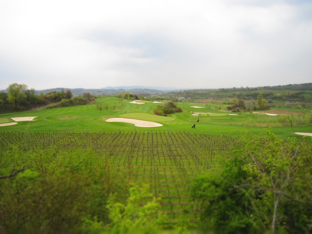 Der GC Breisgau ist grob 20 Jahre alt und begann als 9-Loch Kurs. Er liegt in Sichtweite des Kaiserstuhls und ist recht hügelig. Das Design der Löcher war sehr interessant angelegt. Es gab machbare Par 4 mit etwa 300 Metern Länge und abwechslungsreiche Par 3. Der Platz war wunderbar in die Landschaft eingefügt und es gab immer wieder schöne Ausblicke. Und wie es sich für die Gegend gehört gab es auch Weinstöcke auf dem Platz. Dazu erinnerten mich die Löcher 13-17 sogar etwas an den Quarry Kurs des Black Diamond Clubs… Wie gesagt, er erinnerte ein wenig…