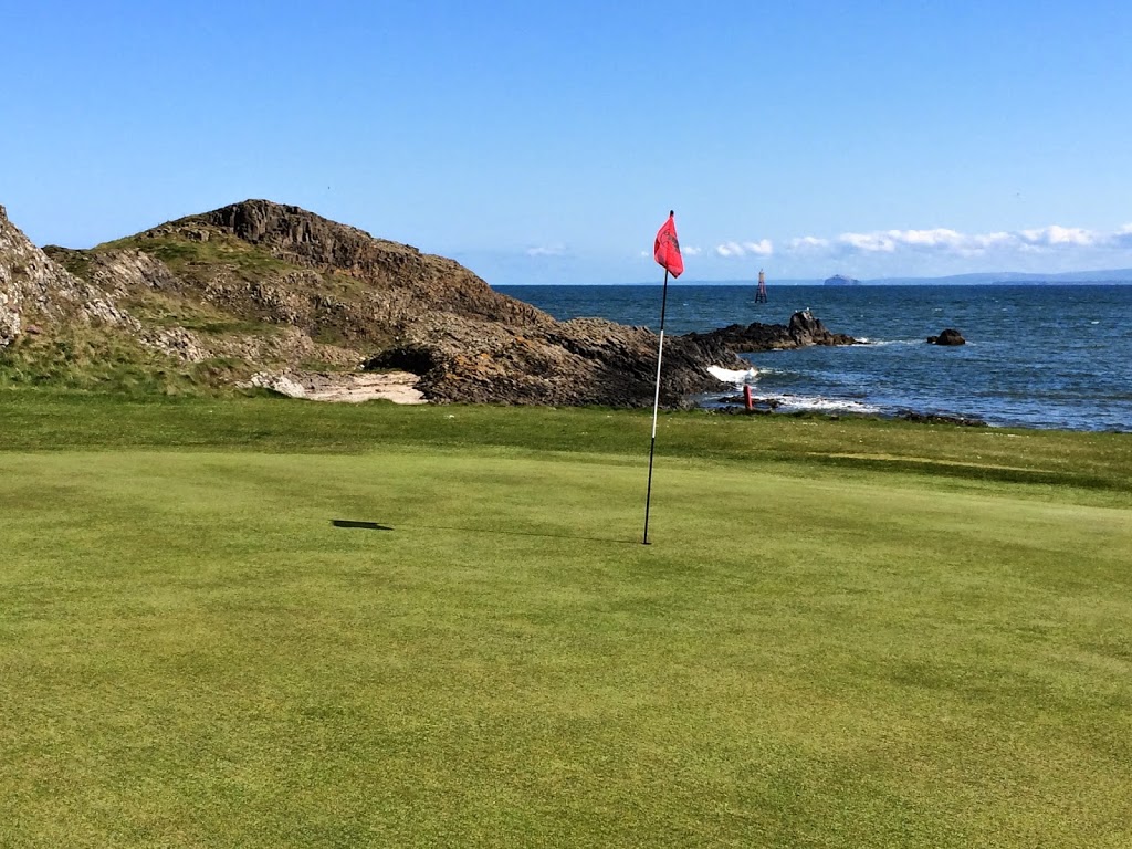 Die Runde dort ist übrigens auch sehr zu empfehlen. Man spielt einen klassischen Linkskurs, der alles bietet, was man sich wünscht. Höhepunkt für mich waren ganz klar die Löcher 10-14. Immer Blick auf den Firth of Forth. Schräg gegenüber ist der Bass Rock (den man immer von North Berwick aus sieht). Zudem ist die grün bewachsene Felsküste alleine den Besuch wert. Erwähnenswert ist auch, dass der Platz (Par 70) aus 16 Par 4 und 2 Par 3 Löchern besteht. Hatte ich so auch noch nicht. Umgerechnet war der Platz knapp 5600 Meter lang. Was für ein Par 70 ok ist. Ich habe den Platz auf jeden Fall sehr genossen.
