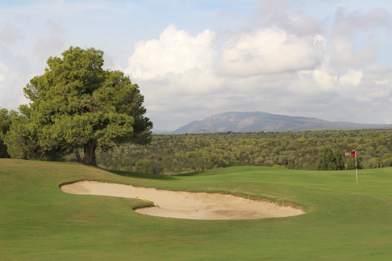 Der Platz befindet sich in leicht hügeligen Gelände und hat einige nette Löcher. Die 3 fand ich ganz nett. Dogleg recht von einem sehr hoch gelegenen Abschlag. Die 8 war auch ganz witzig. Par 4 mit einem engen Fairway, welches von einem See geschützt wird, über den das Grün angespielt werden muss. Slicer also aufpassen! Auf den zweiten 9 ist die 12 noch erwähnenswert. Par 5, bei dem es erst bergauf und dann stark bergab in die „Agavenarena“ geht. Das Grün ist umgeben von Agaven…