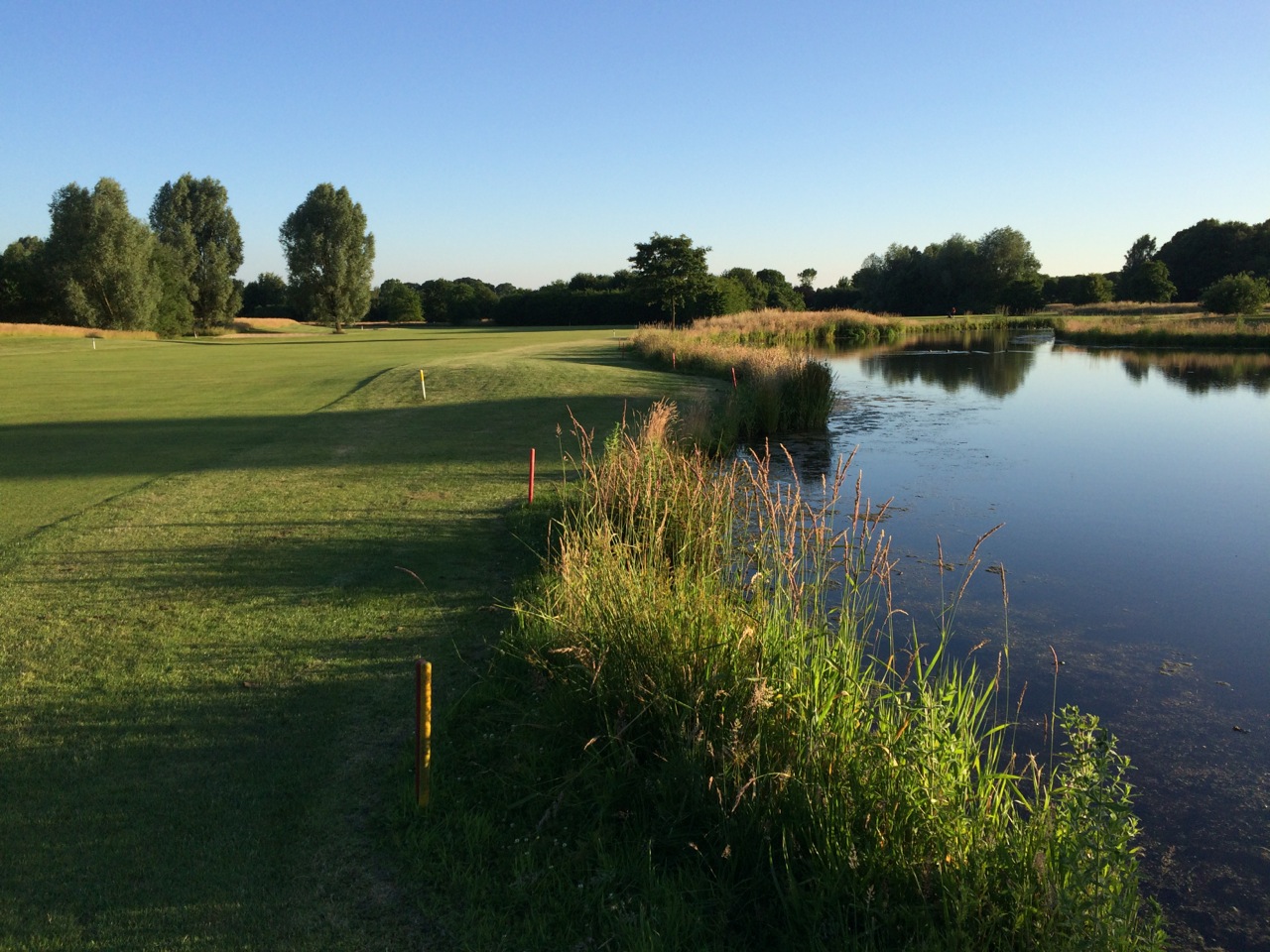 Auf der Runde gefielen mir persönlich die Löcher 3, 13 und 16 am besten. Nebeneinander gelegen haben sie für meinen Geschmack die meiste Abwechslung geboten. Highlight ist für mich die 13. Ein Dogleg, welches mit einem Inselgrün endet. Das war ganz hübsch. Und Achtung an der 18. Dort gehen (wahrscheinlich jeden Abend) um 21.00 Uhr die Rasensprenger an. Ich habe noch nie beim chippen so einen Schrecken bekommen.
