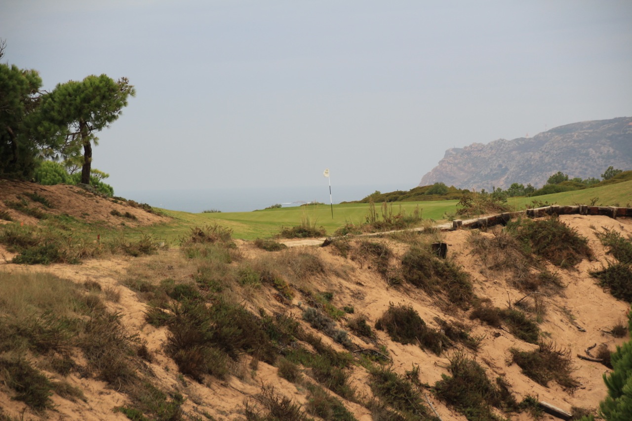 Die Runde auf Oitavos Dunes beginnt mit einem Abschlag direkt neben der Range. Die ersten 4 Löcher bieten relativ enge Löcher zwischen Pinienwäldern. Nicht zu schwer und hübsch anzusehen. Gelegentlich sieht man ein paar Häuser durchscheinen. Es scheint hier nicht gerade ein sozialer Brennpunkt zu sein. Allerdings sind viele Häuser auch nicht bewohnt. Ab Loch 5 wird es dann offener und das in der Werbung versprochene Linksgefühl kommt gelegentlich auf. Teilweise spielt man nun in den Dünen und die sehr guten Grüns kommen noch mehr zur Geltung. Die Highlights des Platzes spielt man dann an den Löchern 11-15. Die 11 ist ein bei Rückenwind drivebares Par 4 von einem erhöhten Abschlag. Die 13, ein kurzes Par 5, bietet viele Optionen. Besonders hervorzuheben ist aber der Wow-Effekt, wenn man den Weg entlang geht und dann zur 14 und zur 15 kommt. Tolle Par 3s, bei denen man denkt, „Das ist klasse!“