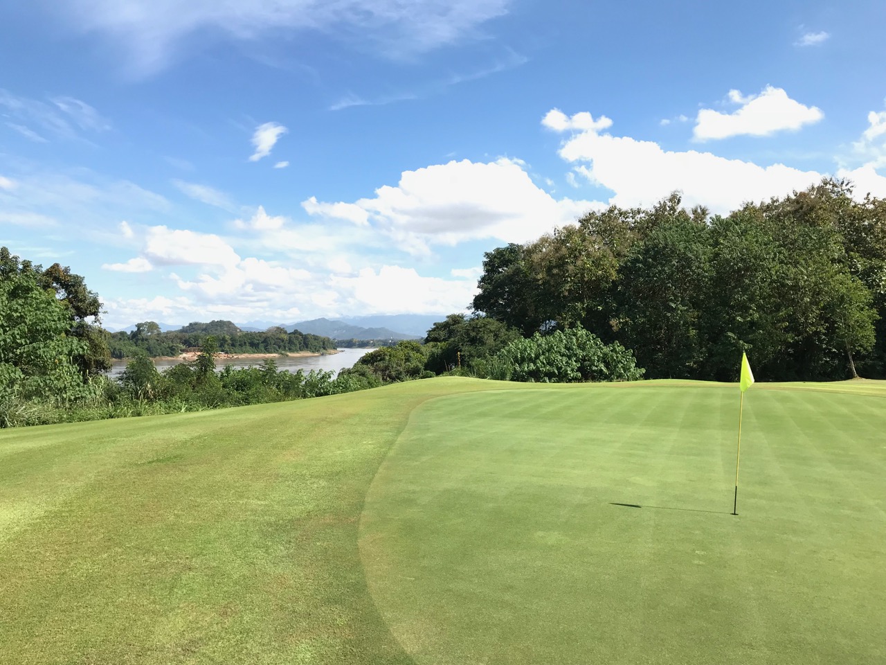Der Platz ist in einen Dschungel gebaut und hatte ein Loch am Mekong. Das Par 3 war dann auch das Highlight des Platzes. Die anderen Löcher waren vernünftig designed und waren gut spielbar. Die Fairway waren meist breit genug. Das mussten sie auch sein, da ein Ball, der im Dschungel landete, eigentlich weg war. Die Caddies hatten wohl auch Respekt vor dem Gestrüpp, weil sie dort auch keine Bälle suchen wollten. Als Teilzeitslicer verlor ich einige Bälle. Da wir ohne Golfgepäck reisten, hatte ich natürlich nicht genug Bälle dabei. Verlorene Bälle konnte man alle paar Loch bei den Platzarbeiterinnen nachladen. 10 Bälle für 2 Dollar war preislich ok.