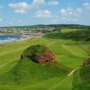 Loch 7 ist wieder mal nichts für Spieler, die vom Abschlag aus nach rechts tendieren. Rechts das Meer und der Strand, der sich knapp 20 Meter unter einem befindet. Auch ich habe hier zweimal Glück gehabt. Meine Bälle landeten immer knapp im Spiel, obwohl rechts mehr als genug Platz war. Nach einem netten Par 3 an der 8 ging es dann zum optisch vielleicht nicht sehr aufregenden Loch 9. Mit knapp 390 Meter (für mich) doch recht lang, hatte es vor allem das Grün in sich. Dieses war schmal und lang. Der erste Teil hatte ein extremes Gefälle und man möchte auch nicht links landen. Ein Loch, bei dem man sich sehr über ein Par freut.