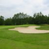 Loch 8 und 9 kommen mir vor, als hätte der Designer die Aufgabe bekommen, hier etwas zu bauen, wo man nicht unbedingt Golflöcher bauen müsste. Das Grün am Par 3 an Loch 8 ist aus meiner Sicht zwar breit genug, aber nicht tief genug. Zusätzlich ist ein Wassergraben vor dem Grün. Und wer zu kurz ist, dessen Ball ist verschwunden. Da alles recht langsam war an dem Tag, hatte ich Zeit zu schauen, was die Spieler vor uns machen. Von 12 Spielern landeten nur 2 auf dem Grün. 2 waren zu lang und der Rest musste in die Droppingzone. Natürlich kann man das so machen, aber ich denke immer man sollte allen eine Chance auf einen angemessen Score geben. Auch dem schwächeren Spieler.