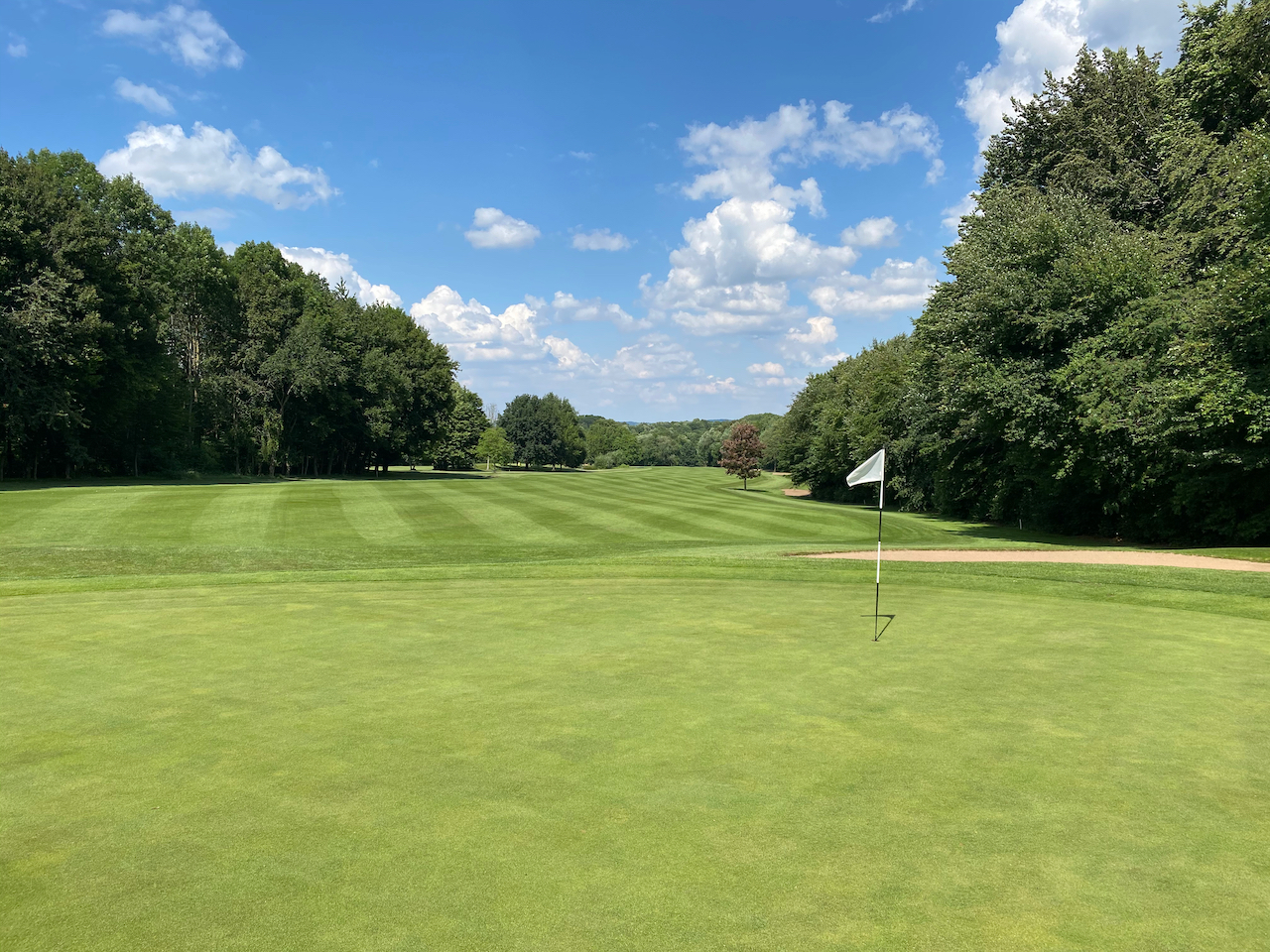Topografisch bietet der Platz eine Menge Abwechslung. Er ist in der Summe alles andere als flach. An den Löchern 3-7 und 14-18 geht es ganz schön rauf und runter durch Waldgebiete mit entsprechend engen Fairways. Hier könnte man sicher einige Bäume entfernen. Aber das ist in Deutschland a) nicht so einfach und b) möchten es die Mitglieder der Clubs nicht immer. Durch fehlenden Platz auf den Fairways hat man nicht immer genug Optionen im Spiel. Man muss eigentlich immer geradeaus spielen. Und das ist irgendwann langweilig.