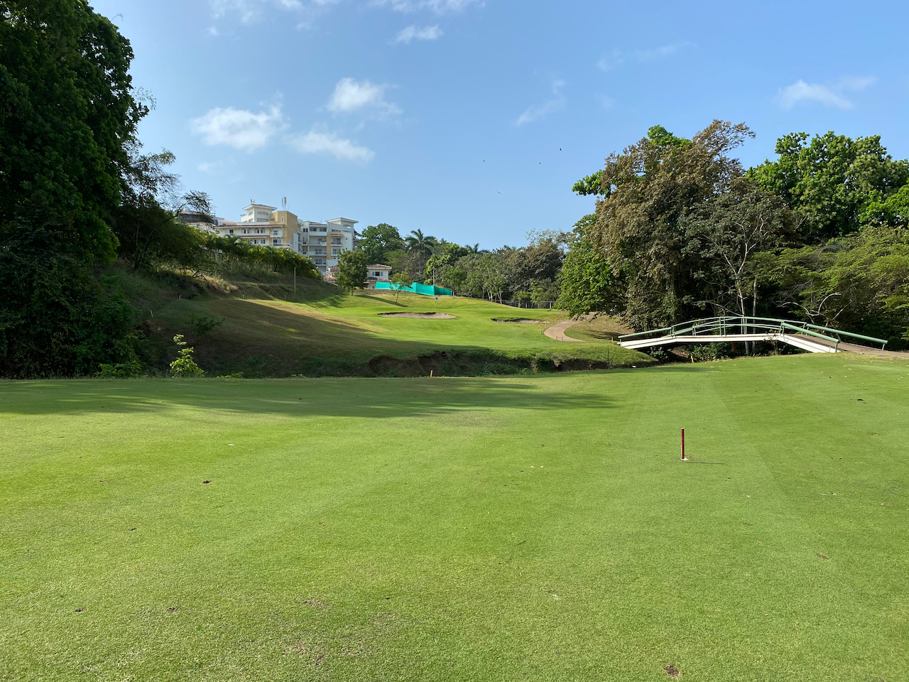 Was mir nicht so gut gefallen hat, war der Pflegezustand des Platzes. Mir ist schon klar, dass das Wetter in Panama möglicherweise nicht perfekt für einen Golfplatz ist, aber hier war es wohl wirklich mangelnde Pflege durch fehlendes Geld. Das fehlende Geld merkte man auch auf einem Teil des Geländes, der auf der Scorecard als Second Phase bezeichnet wurde. Dort sollen irgendwann wohl mal weitere Häuser für Leute mit dem entsprechenden Kleingeld entstehen. Zum Zeitpunkt meines Besuches passierte dort aber nichts. Und der Bewuchs des Baulandes wirkte, als wäre dort schon länger nichts los. Das hatte übrigens auch Auswirkungen auf den Platz. Die zweiten 9 beginnen mit zwei Par 3. Loch 10 ist eigentlich ein Par 4. Aber hinter dem Abschlag war damals ein Bauzaun.