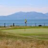 Nachdem ich den ersten Abschlag, einige hundert Meter vom Clubhaus entfernt, entdeckt hatte, ging die Runde los. Offenes Gelände und einigermassen breite Fairways. Aber im ganzen nichts besonderes. Der erste Teil des Platzes, die Löcher 1-12, plätscherte so dahin. Gefühlt ging es nur hin und her. Manchmal waren da ein paar Bäume, mal ein See vor dem Grün und mal ein uninspirierend wirkender Bunker. Fürs Auge gab es zwischen dem Grün von Loch 12 und dem Clubhaus eine weiße Mühle ohne Flügel.