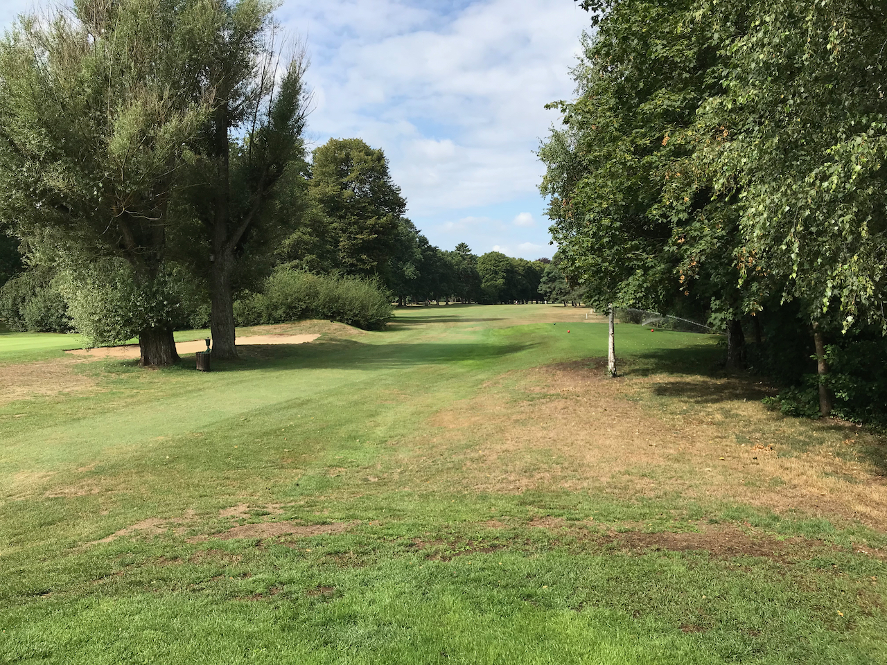 Die nächsten 8 Löcher sind leicht zu beschreiben. Durch den geschätzt knapp 200 Meter breiten Streifen gibt es 4 Löcher hin und 4 Löcher zurück. Alles durch eine alte, eingewachsene Parkanlage. Zu beiden Seiten sind hinter den Bäumen Wohnhäuser. man ist ja mitten in der Stadt Bremen. Am Wendepunkt des Platzes ist man dann fast in Greifweite der Autobahn. Man kann diese zwar hören, aber da habe ich schon lauteres erlebt. Die Löcher sind alle gut gestaltet und haben gut platzierte Bunker. An einigen Löchern könnte man ruhig mal ein paar Bäume schneiden. Beispielsweise an Loch 6. Kann aber natürlich sein, dass dies bis heute schon geschehen ist…